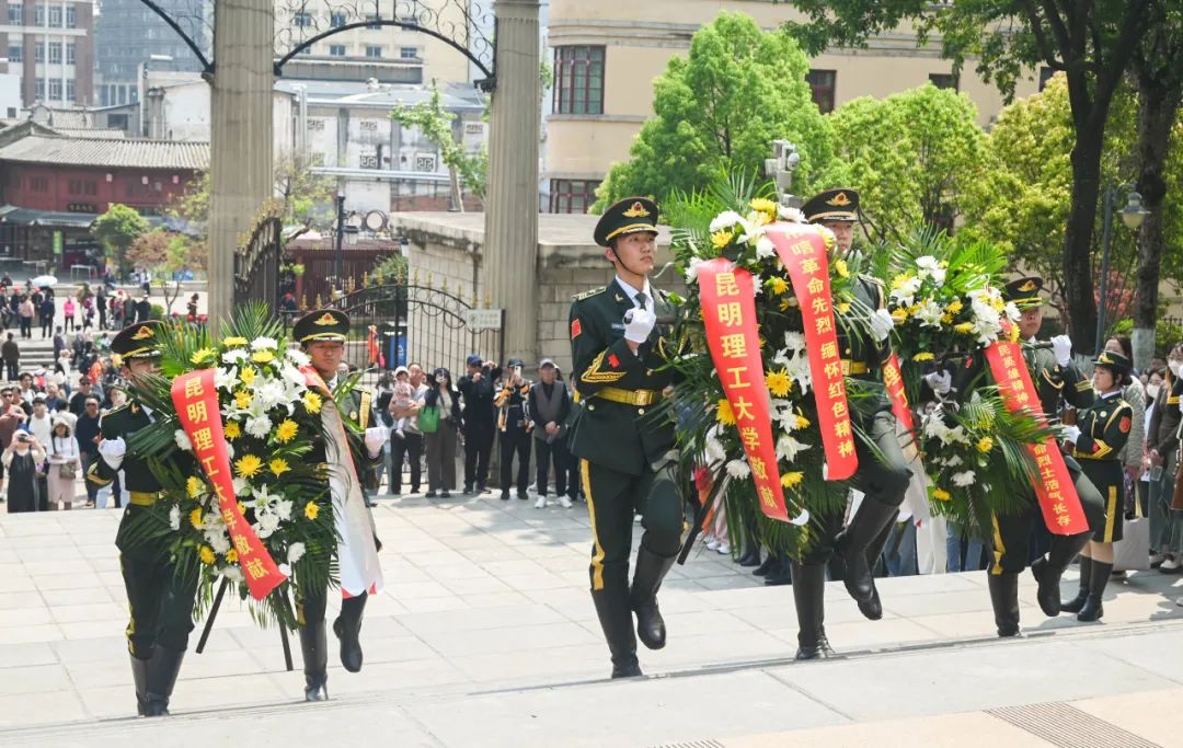 全体人员抵达云南抗战胜利纪念堂后,与新利18官方客服学生处(学生工作部、武装部)及戎光国防教育社团师生代表一同开展“缅怀革命先烈,传承革命精神”清明祭英烈活动,活动在庄严肃穆的氛围中拉开序幕,纪念碑前全体肃立,奏唱国歌,鲜花献烈士,壮歌慰忠魂,深切表达师生们对革命英烈的崇高敬意。