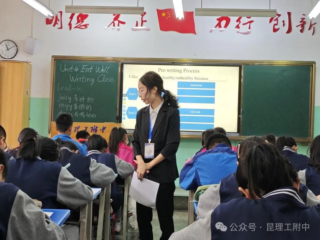 张晨祎老师执教的内容为2025秋新教材人教版七年级下册unit 4 Eat Well 作文课时。本堂课围绕“Eating Habits”主题,以“词汇积累—句型积累—阅读课文—随堂写作”为主线展开,通过对教材3a部分进行句型和结构分析,梳理写作技巧巩固写作知识,提升写作素养。优点:板书书写工整、思路清晰、为学生写作词汇储备提供中文和英语的双语释义。改进方向:课堂节奏需要调整和改进。课堂节奏应该更注重详略得当,应该去粗存精。