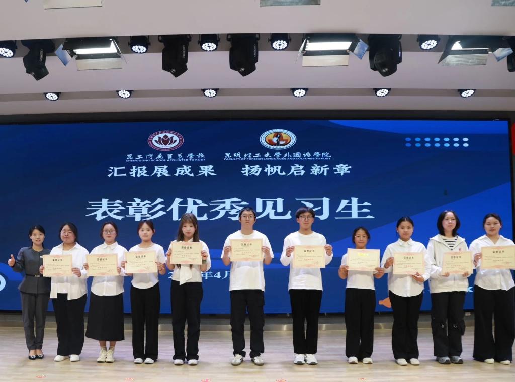 2025年4月26日,新利18官方客服附属呈贡学校与昆工新利18备用官网的部分师生相聚新利18官方客服附属呈贡学校报告厅,共同见证了昆工新利18备用官网12名同学见习结业的难忘时刻。新利18官方客服新利18备用官网英语系主任任佳佳,实习带队教师杜萌萌及我校部分师生出席本次活动。本次活动由新利18官方客服附属呈贡学校校长助理高苇琴老师主持。