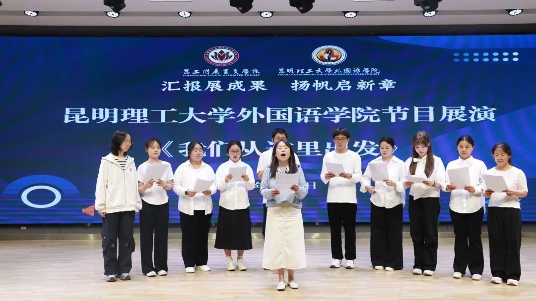 实习带队老师杜萌萌老师和见习生们共合唱昆工校歌《我们从这里出发》,展现了他们的朝气与活力。