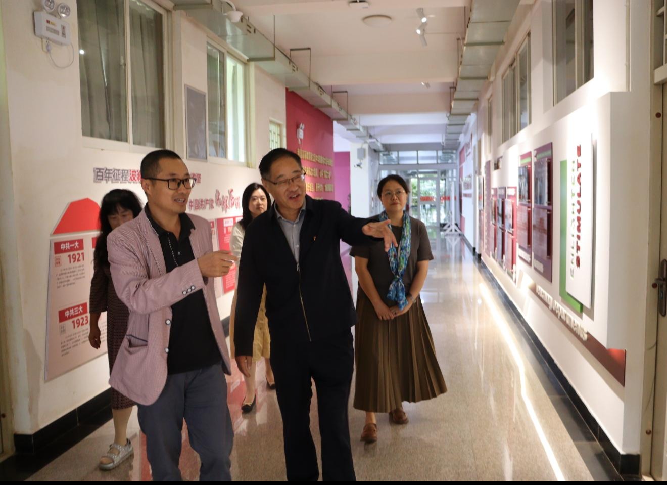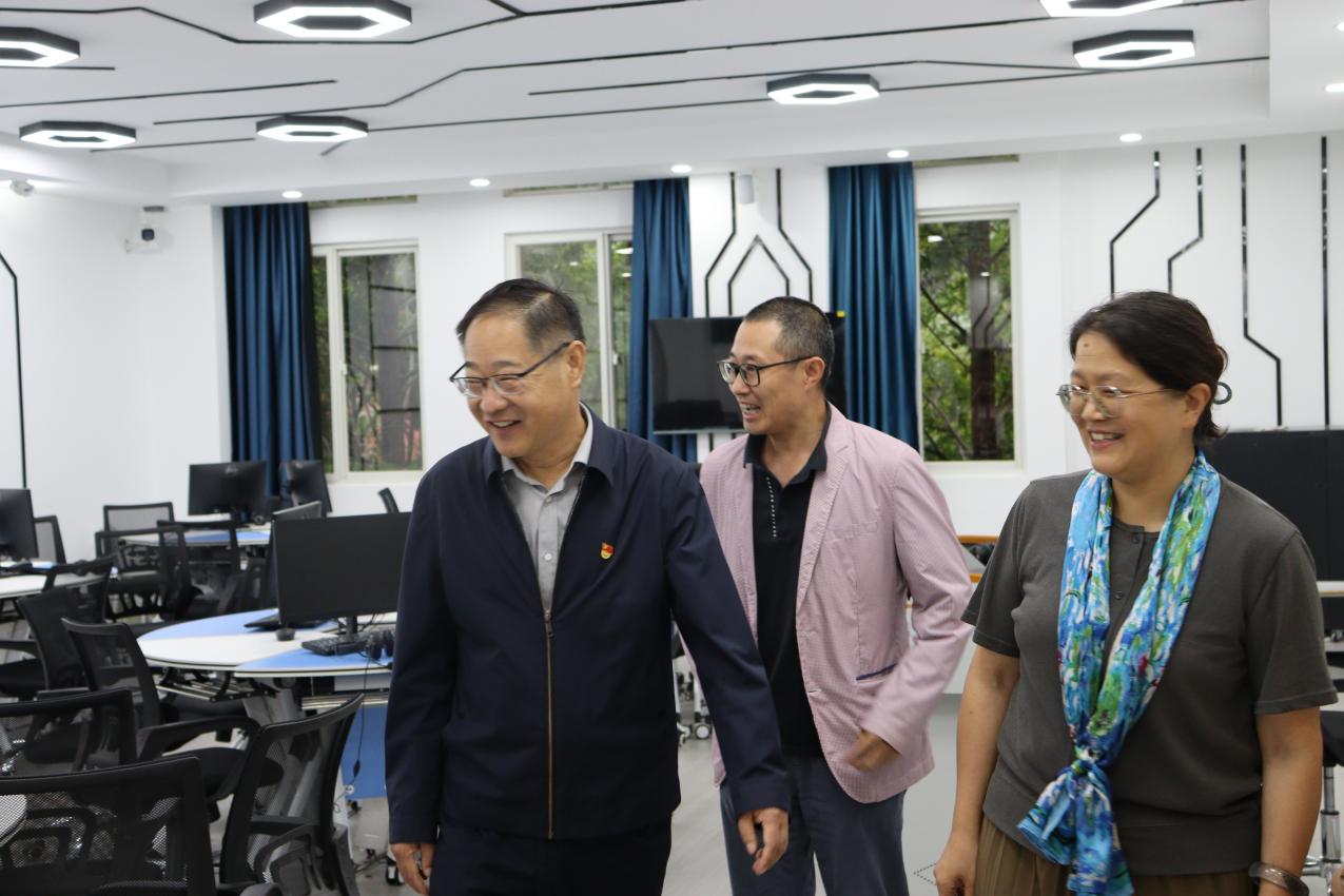 随后,蒋业华实地考察了学院图书资料室、外语综合技能实训室、虚拟仿真国际学术会议实训室、党员活动室、团员活动室、党建长廊、学院文化走廊、心灵走廊及各办公室等教学活动场所,细致了解设施使用情况及建设成效,对学院持续改善办学条件、推进软硬件环境建设的努力表示赞许。