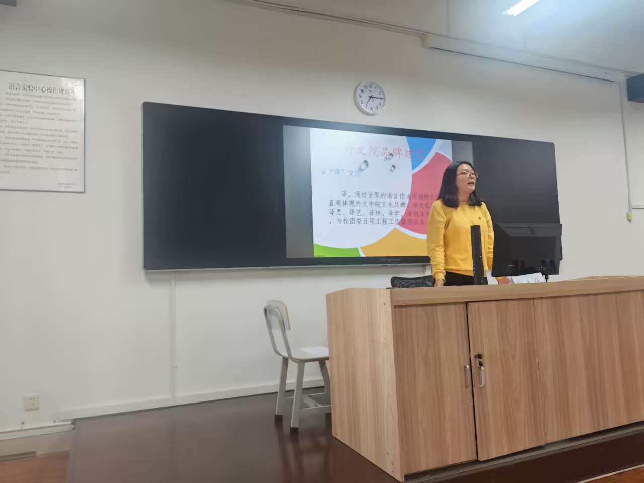 院长王英在“院长第一课”中向同学们介绍了学院专业概况,讲解了学习英语的重要意义,以及复合型外语人才应该具备的三个条件:有家国情怀,有全球视野,有专业本领。她寄语全体新生要遵守规矩,方圆成;强健体魄,身心悦;与人友善,自奋进;勤奋求学,强本领;砥砺前行,守初心。
