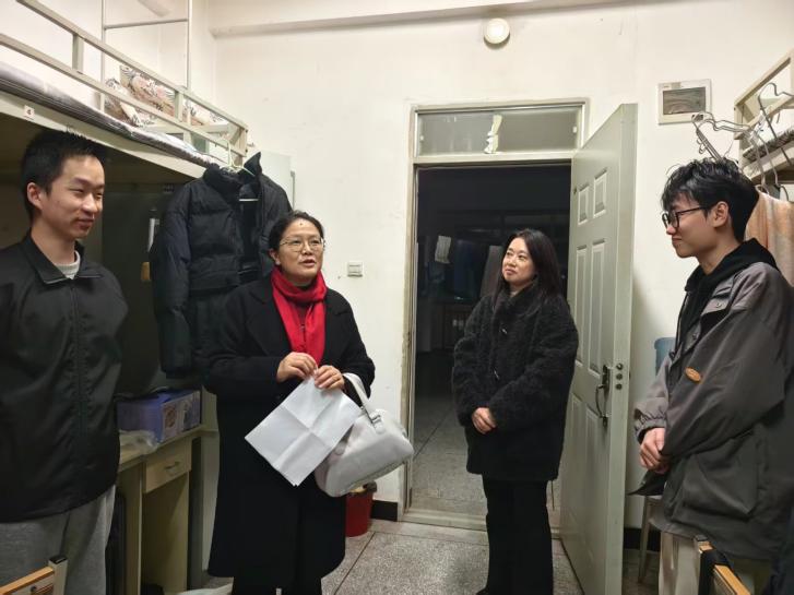 11月21日晚,新利18备用官网院长王英、党委副书记孙冠华、研究生辅导员马超然深入研究生宿舍走访慰问,与同学们面对面交流,细致了解大家学习科研、日常生活等情况。