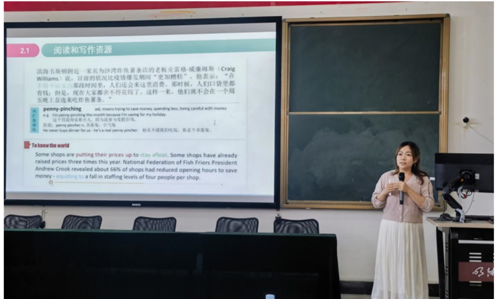 外文学院2023年度教育教学成果汇报分享会聚焦国家级一流本科课程“大学英语(一)”及国际一流课程“综合英语(一)”的建设成果,旨在树立典型、交流经验、相互学习、共同成长。“大学英语(一)”课程主讲教师孙慧副教授详细介绍了国家级一流本科课程申报书所包含的内容,申报的前期准备,以及课程团队的建设对成功获批国家级一流本科课程的重要意义,特别强调了大学英语教学过程中学生的learning by doing以及教师的growing by doing之间的相互促进、教学相长的内在联系。