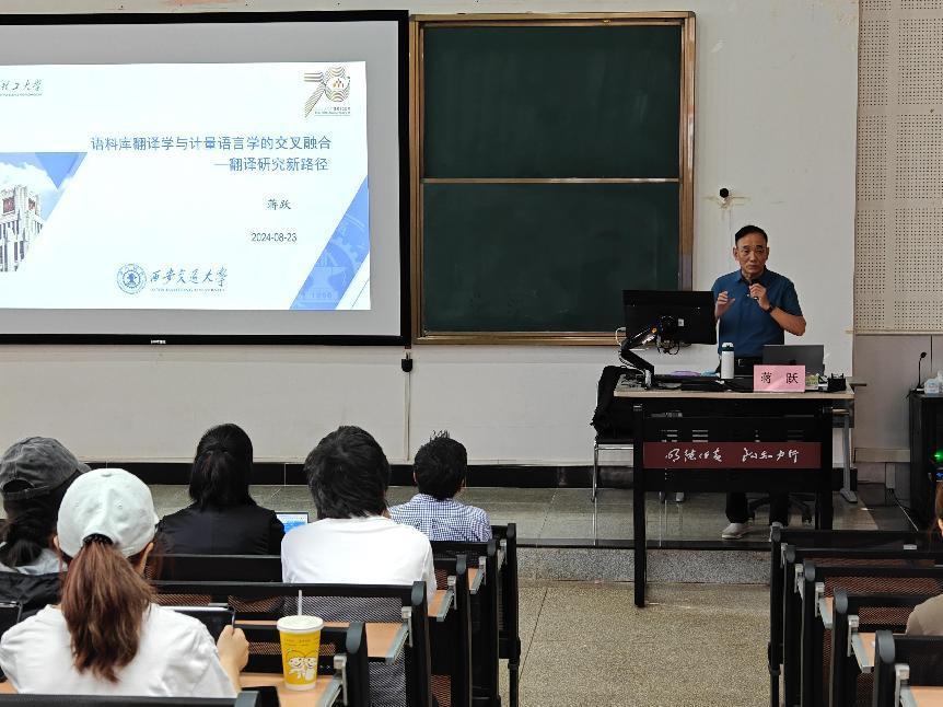 2024年8月22-23日,西安交通大学外国语学院博士生导师、翻译方向学科带头人蒋跃教授受邀在新利18备用官网博文100报告厅开展两场硕导培训讲座。会议由王英院长主持,新利18备用官网近40位硕导参加了本次培训讲座。