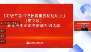 2023年10月19日,《习近平总书记教育重要论述讲义》(英文版)教学示范系列培训第二期在外研社U讲堂平台举行,新利18备用官网英语系组织全体教师参加线上培训。教研主题为“《习近平总书记教育重要论述讲义》(英文版)融入英语教育研究方法与论文写作课程的探索与实践”。