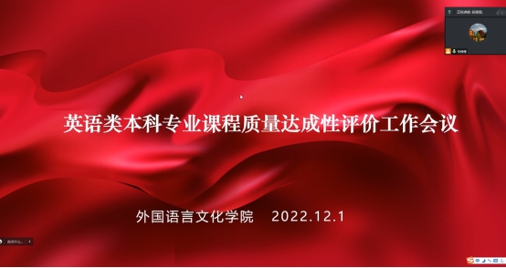 为落实学校第五次课程质量评价工作的相关要求,2022年12月1日新利18备用官网在线召开英语类本科专业课程质量达成性评价推进工作。新利18备用官网院长王英教授、院党委副书记邱清遐及英语系全体教师参加了此次专题教学研讨会,会议由英语系主任任佳佳老师主持。