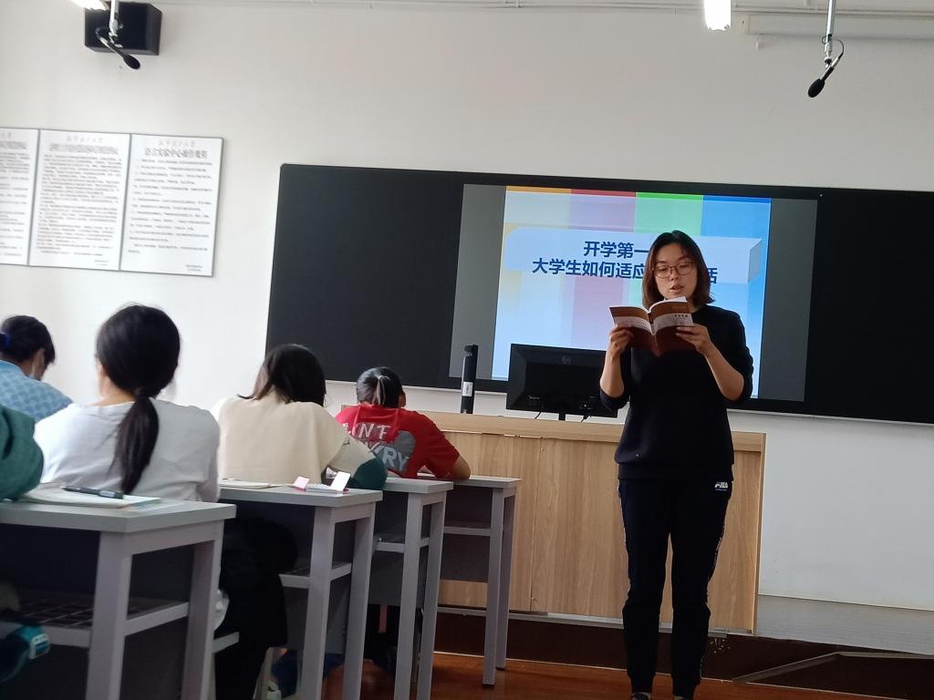 本次入学教育还邀请了学院“清风”双语宣讲团负责人之一,2021级学生杨梅婷介绍了宣讲团的历史,成立目的和意义并进行了一段宣扬红色文化的双语演讲风采展示。杨梅婷以自身经历鼓励同学们在大学其间不要惧怕挑战,要勇于尝试、敢于犯错,不断磨练自己,才能挖掘潜能,突破自我,收获成长。