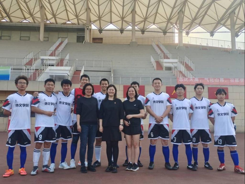 4月13日,足球队首场迎战法学院足球队。在对方强劲地攻势下,外文学院的球员们凭借着为院争光的信念、百折不挠的勇气和毅力创造了首粒进球,现场掌声雷动、振奋人心。在接下来的两周里,先后迎战管经院足球队、理学院-生科院联合足球队。
