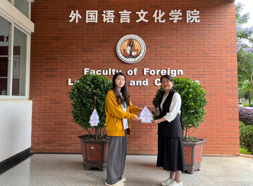 王英院长表达对毕业生的拳拳期望,勉励同学们提升自我、奉献青春、拼搏人生,不懈努力奋斗,在各行各业发光发热,称赞各位同学以最积极的态度、最实际的行动表达了对昆工、对外文学院的一片情谊,感谢大家为学院捐赠盆景,为外文学院增添亮丽风景。